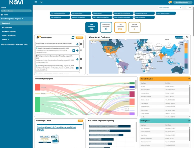 Gérer la mobilité internationale n’a jamais été aussi important — ni aussi complexe. C’est pourquoi nous sommes ravis de vous présenter Navi, une solution de mobilité conçue pour favoriser de meilleures décisions dès le départ. Navi, dérivé du mot navigation, réunit le meilleur des données et de la technologie d’AIRINC au sein d’une plateforme intégrée. Avec Navi, vous bénéficiez de :